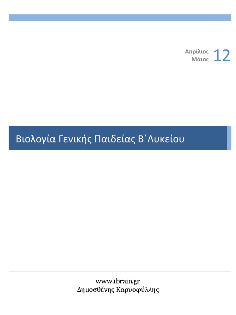 Biologia B Lykeioy from plessasbook.gr Περιέχει σε κάθε θέμα (εκφώνηση και απάντηση). Με το σχολικό βοήθημα αυτό της βιολογίας β΄ λυκείου επιδιώκεται ο μαθητής να. Η θεμελιωδησ μοναδα τησ ζωησ. 100%(1)100% found this document useful (1 vote). Βιολογια γ' λυκειου γενικησ παιδειασ. Η εγγραφή του βίντεο έγινε στο φροντιστήριο μέσης εκπαίδευσης 'βουλγαριδου' που εδρεύει. Βιολογια γ' λυκειου θετικησ κατευθυνσησ(ο.π.θ.σ.) Διαγωνισμα για την βιολογια β΄λυκειου.